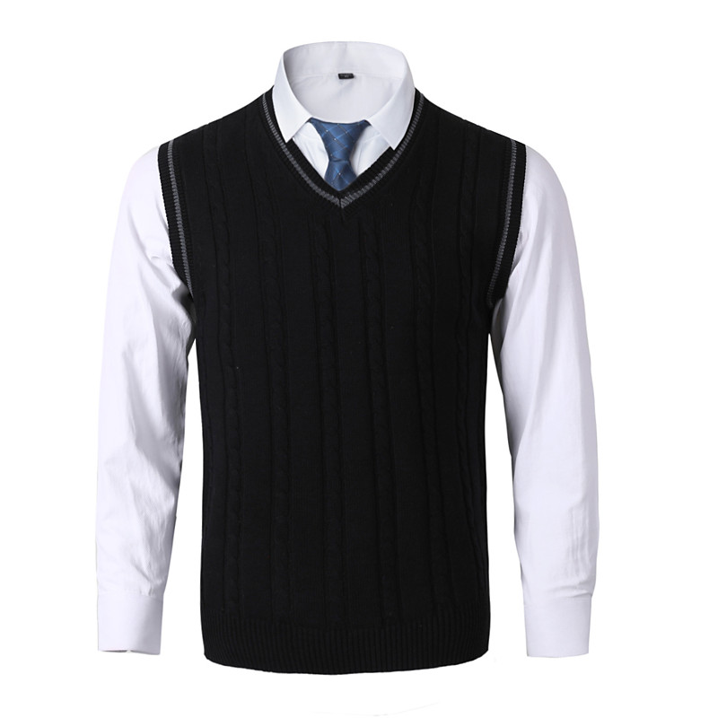 Men's Sweater Vest Pullover Sweater Jumper Dress Sweater Vest Knit Sweater Ribbed Cable Knit Knit Regular Knitted Plain V Neck Fashion Casual Daily Wear Date Clothing Apparel Fall Winter Black White