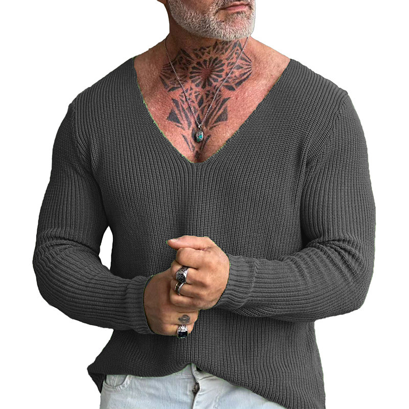 Men's Pullover Sweater Jumper Knit Sweater Ribbed Knit Regular Knitted Plain V Neck Fashion Basic Daily Wear Date Clothing Apparel Fall Winter Black Blue S M L