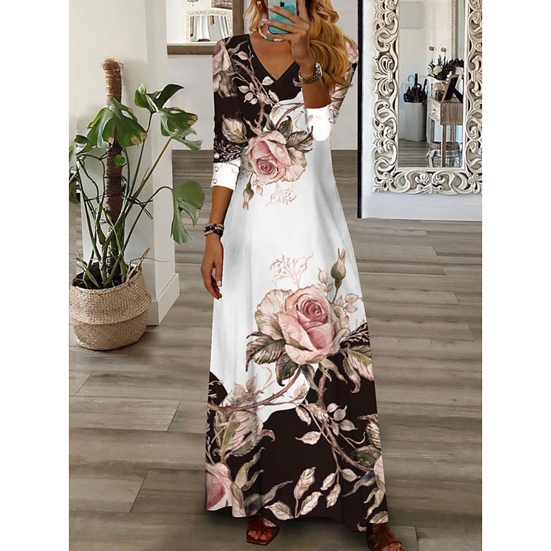 Women's Long Dress Maxi Dress Sheath Dress Floral Dress Print Dress Fashion Elegant Dress Outdoor Holiday Date Regular Fit Flower Long Sleeve Crew Neck Rose Spring