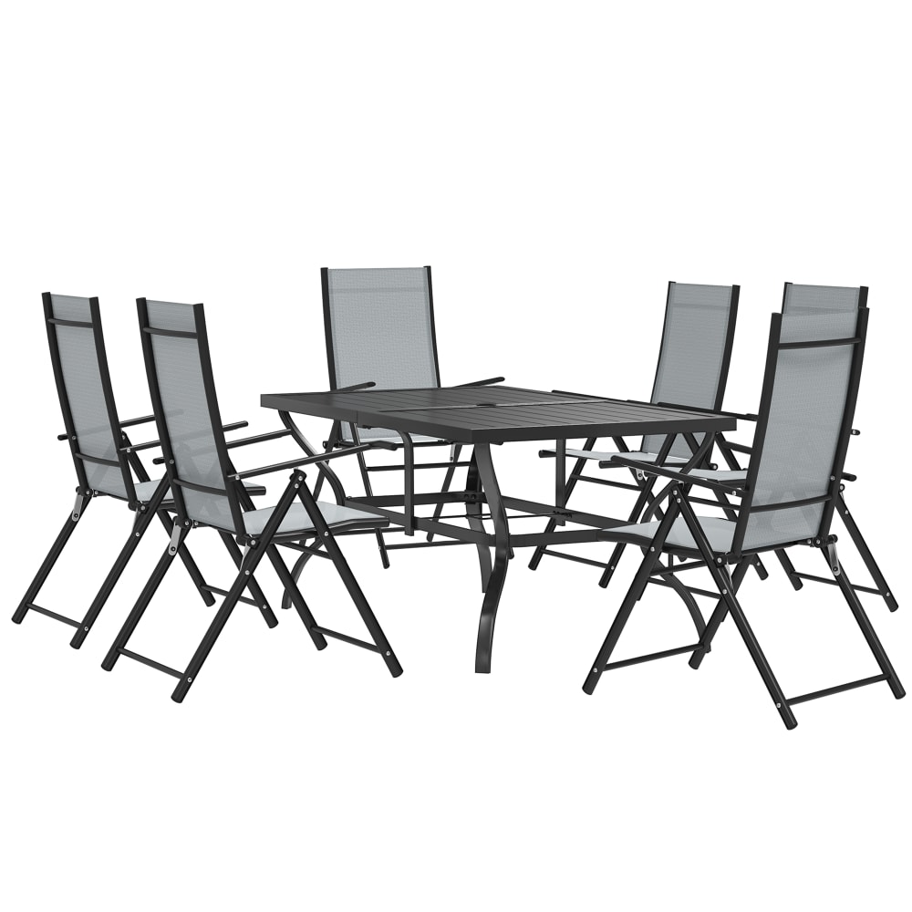 Tavolo da giardino quadrato e 4 sedie in acciaio grigio