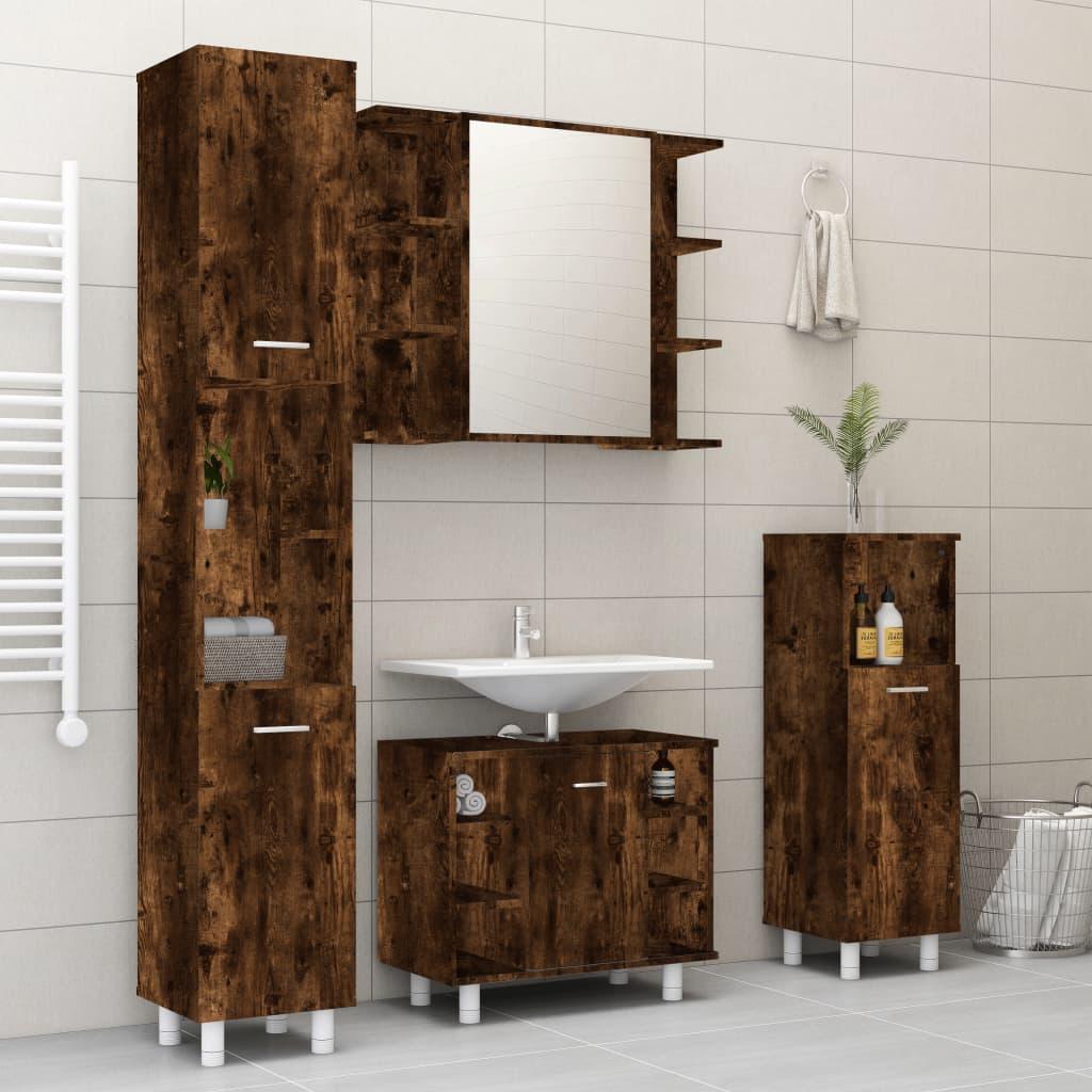 Badeværelsesskabe 4 dele konstrueret træ røget egetræsfarve