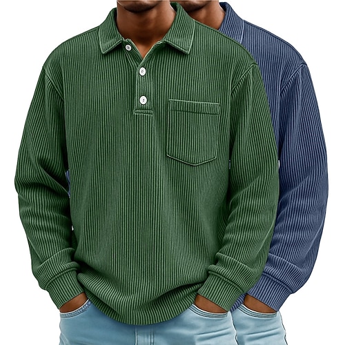 Per uomo Camicia di Velluto a Coste Testurizzato Casuale Sportivo Bavero Manica Lunga Moda Essenziale Blocco di colori 2 Pezzi Caldo Autunno Primavera Autunno Tutte le stagioni Vestibilità regolare