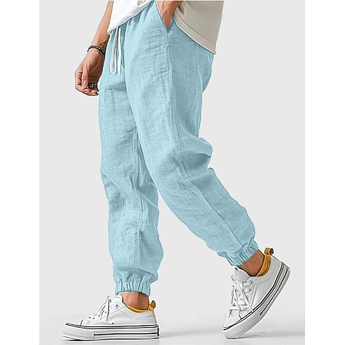 Per uomo Pantaloni di Lino Pantaloni Pantaloni Estivi Pantaloni in Garza Coulisse Tasca Gamba Dritta Semplice Comodità Traspirante Lunghezza intera All'aperto Quotidiano Abbigliamento casual alla moda