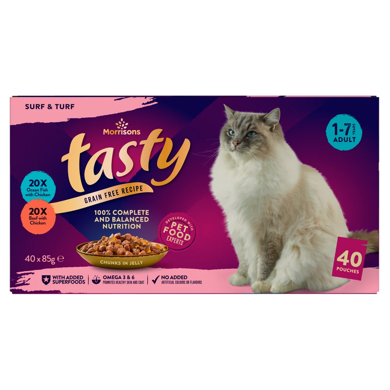 Morrisons Tasty Surf & Turf Chunks in Jelly 1-7 Years Adult 40 x 85g