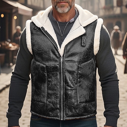 Per uomo Gilet in pile Gilet Quotidiano All'aperto Moda Casual Autunno Inverno Tasca Pile Finta pelle Poliestere Caldo Confortevole Semplice Cerniera Con Cappuccio Vestibilità regolare Nero Marrone