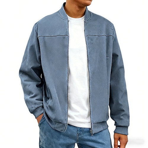 Per uomo Giacca in finta pelle scamosciata Giacca Casual Quotidiano All'aperto Comodità Tasca Primavera Autunno Semplice Vintage Streetwear Collo alla coreana Regolare Blu Nero Blu marino Marrone
