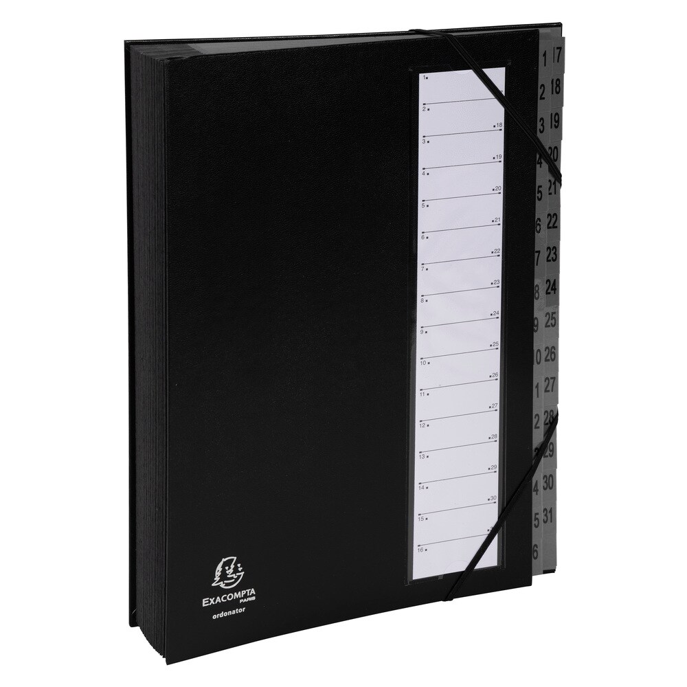 Exacompta Ordnungsmappe mit festem Deckel, Gummizug und dehnbarem Faltenrücken, 32 Fächer mit Kunststofftaben 1-32 Ordonator, für Format DIN A4