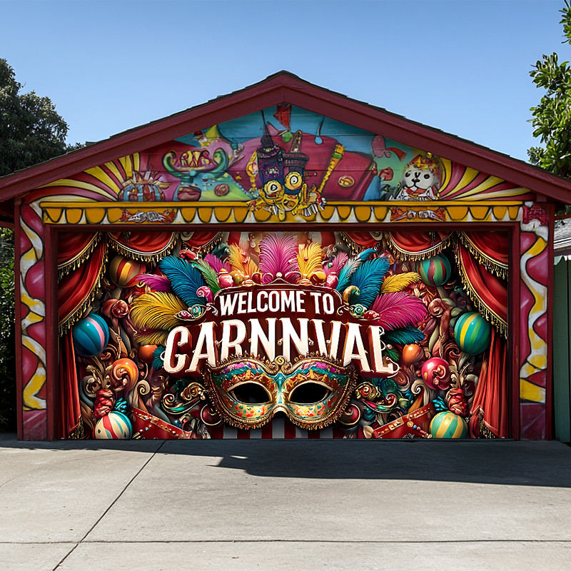 Mardi Gras Garage Door Cover Large Hanging Backdrop Mask Feather Luxury 3D Party Outdoor Shooting Backgrounds Front Door Masquerade Home Decor
