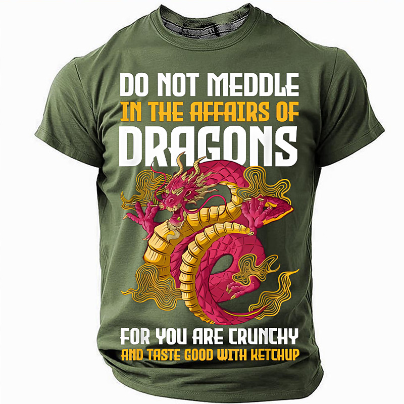 Mens Dragon Graphic T-Shirt Funny 'Do Not Meddle In The Affairs Of Dragons' Crunchy Ketchup Quote Short Sleeve