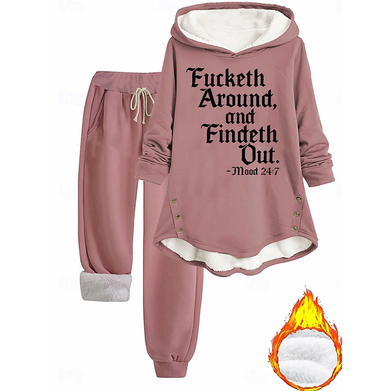Women's Daily Hoodie Long Sleeve Hooded Graphic Letter Drawstring Print Casual Daily Dusty Rose Blue Gray Fall Loose Fit