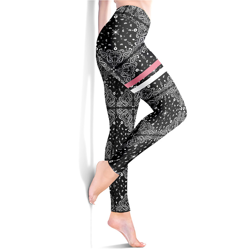Women's Yoga Pants Butt Lift Tummy Control High Waist Gym Workout Running Fitness Cropped Leggings Paisley Black Red Dusty Blue Fall Sports Activewear High Elasticity