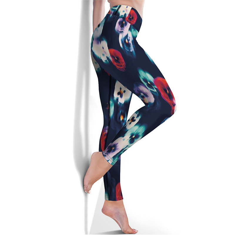 Women's Yoga Pants Butt Lift Tummy Control High Waist Gym Workout Running Fitness Cropped Leggings Floral Dark Navy Purple Brown Fall Sports Activewear High Elasticity