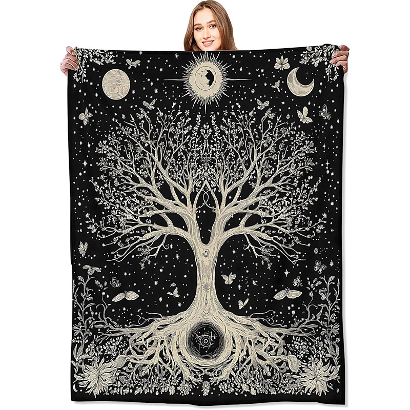 Tapestry Fleece Throw Blanket for Couch Tree of Life Bohemian 3D Fantasy Bedroom Sofa Bed Decorative Warm Blanket Home Decor
