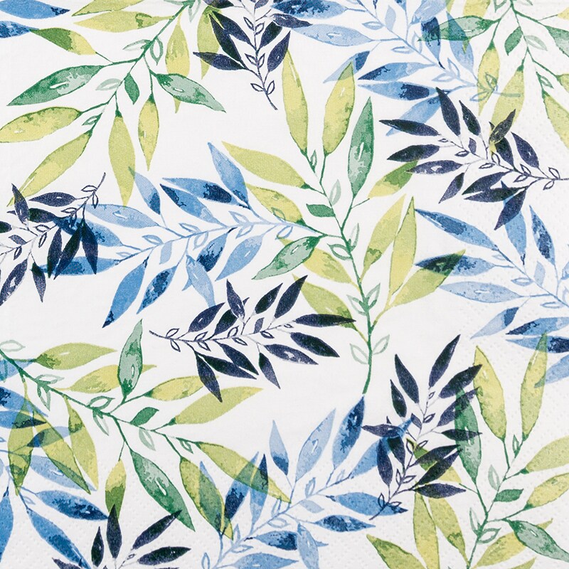 Home Fashion, Watercolour Leafs green, Cocktail-Servietten aufgefaltetes Maß 25 cm x 25 cm, im Viertelfalz, 20 Stück pro Pack
