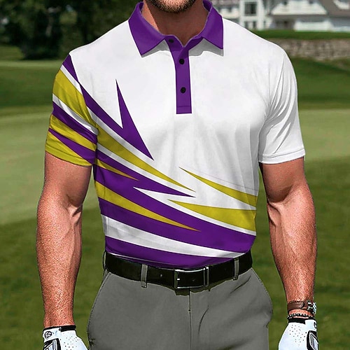 Per uomo Astratto Golf Polo Sportivi Manica Corta Magliette polo Camicie con Colletto Casual Athleisure Bottoni Primavera Estate Blu Rosso Viola