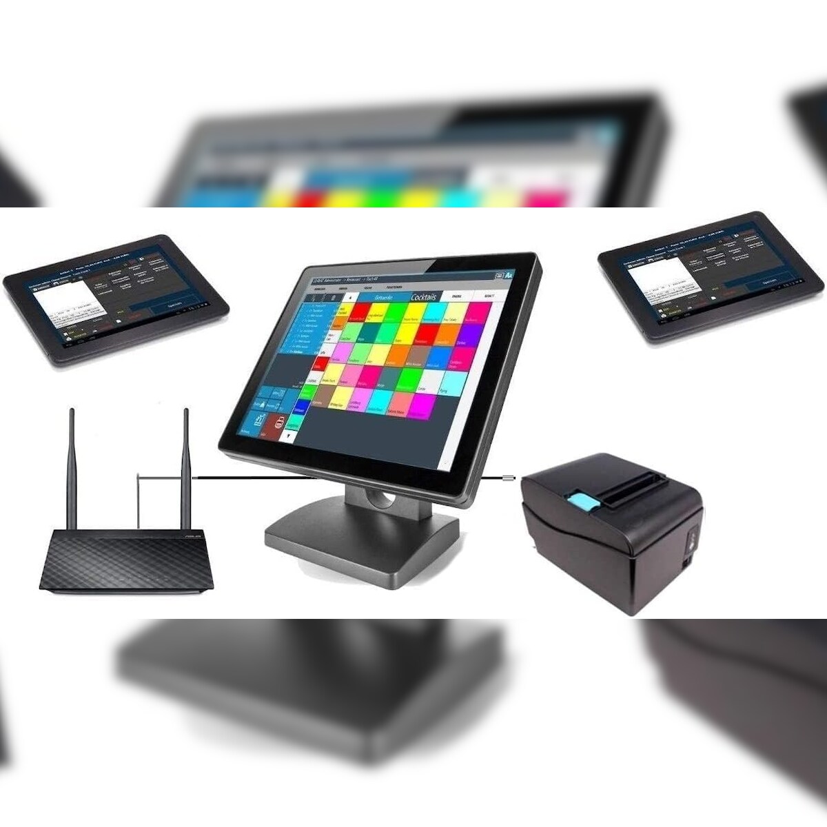 15" GASTRO Kassensystem mit 2x 7" Bestellterminal, Bondrucker, Hauptkasse für Restaurant, Cafe, Biergarten
