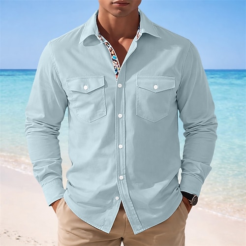 Per uomo Camicia Camicia Estiva Camicia casual Camicia da Spiaggia Bianco Rosa Blu marino Manica Lunga Semplice Scollo a V Vacanza Camicia hawaiana Abbigliamento Cotone Misto Cotone Moda Casual