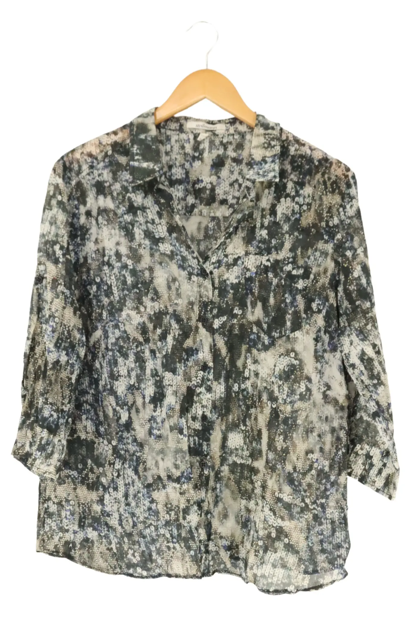 STEILMANN Hemdbluse Gr. 42 Mehrfarbig Kurzarm Vintage Look