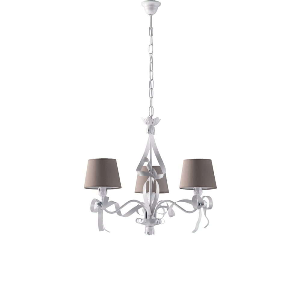 Lampadario Shabby Chic Lucy Bianco 3 Luci Paralumi Tortora BeLight