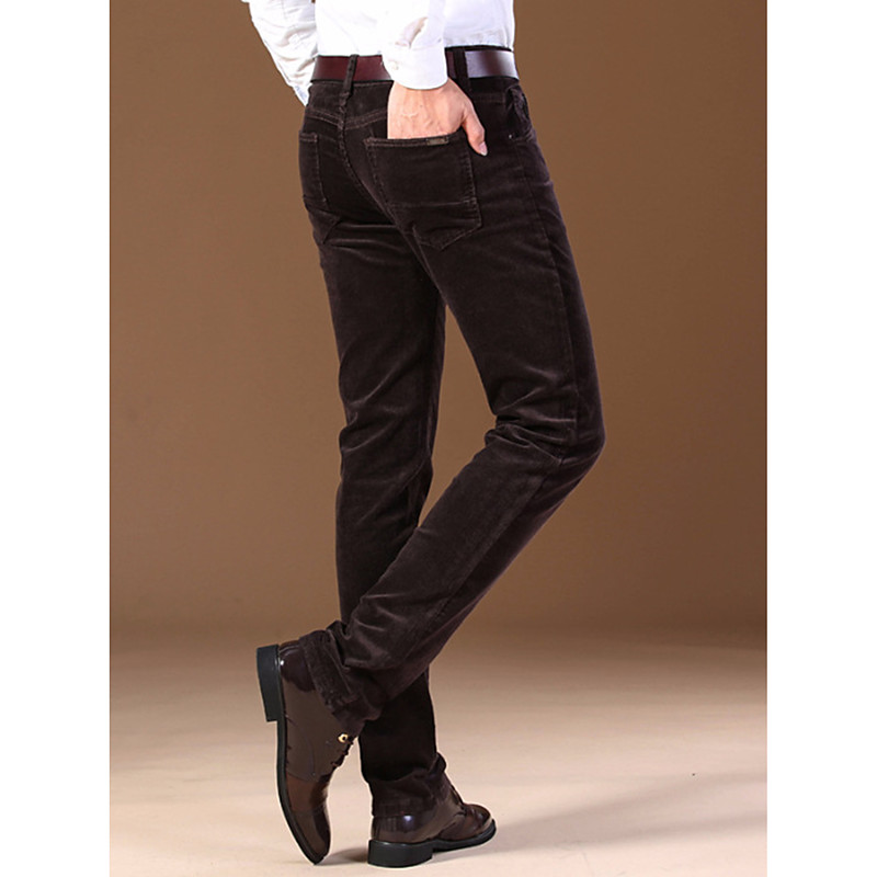 Men's Dress Pants Corduroy Pants Trousers Pocket Plain Comfort Breathable Office Business Dark Khaki Black