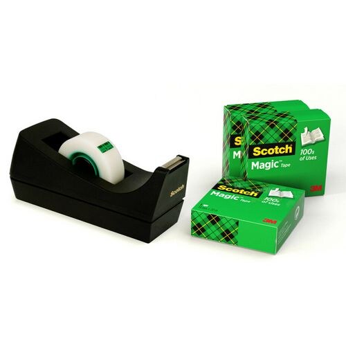 Scotch Klebebandabroller C38 Schwarz mit 3 Rollen Scotch Magic 810 Klebefilm Matt Unsichtbar 19 mm (B) × 33 m (L)