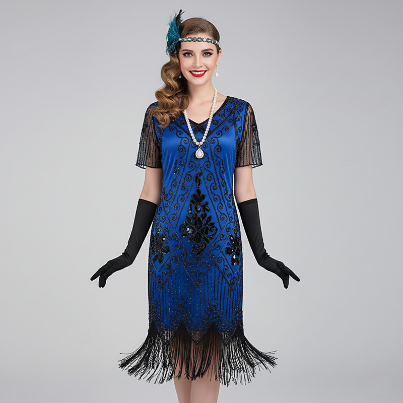 Roaring 20s 1920s Knee Length Flapper Dress Short Sleeves The Great Gatsby Sequins Fringe V Neck Fancy Dress Women's Christmas Carnival Masquerade Retro Theme Party Charleston Dance Adults' Dress