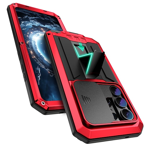 telefono Custodia Per Samsung Galaxy S25 S23 Ultra Plus S22 Plus Ultra Robusto Antipolvere Resistenza Caduta Quattro Angoli Cavalletto Motivo Geometrico Metallo