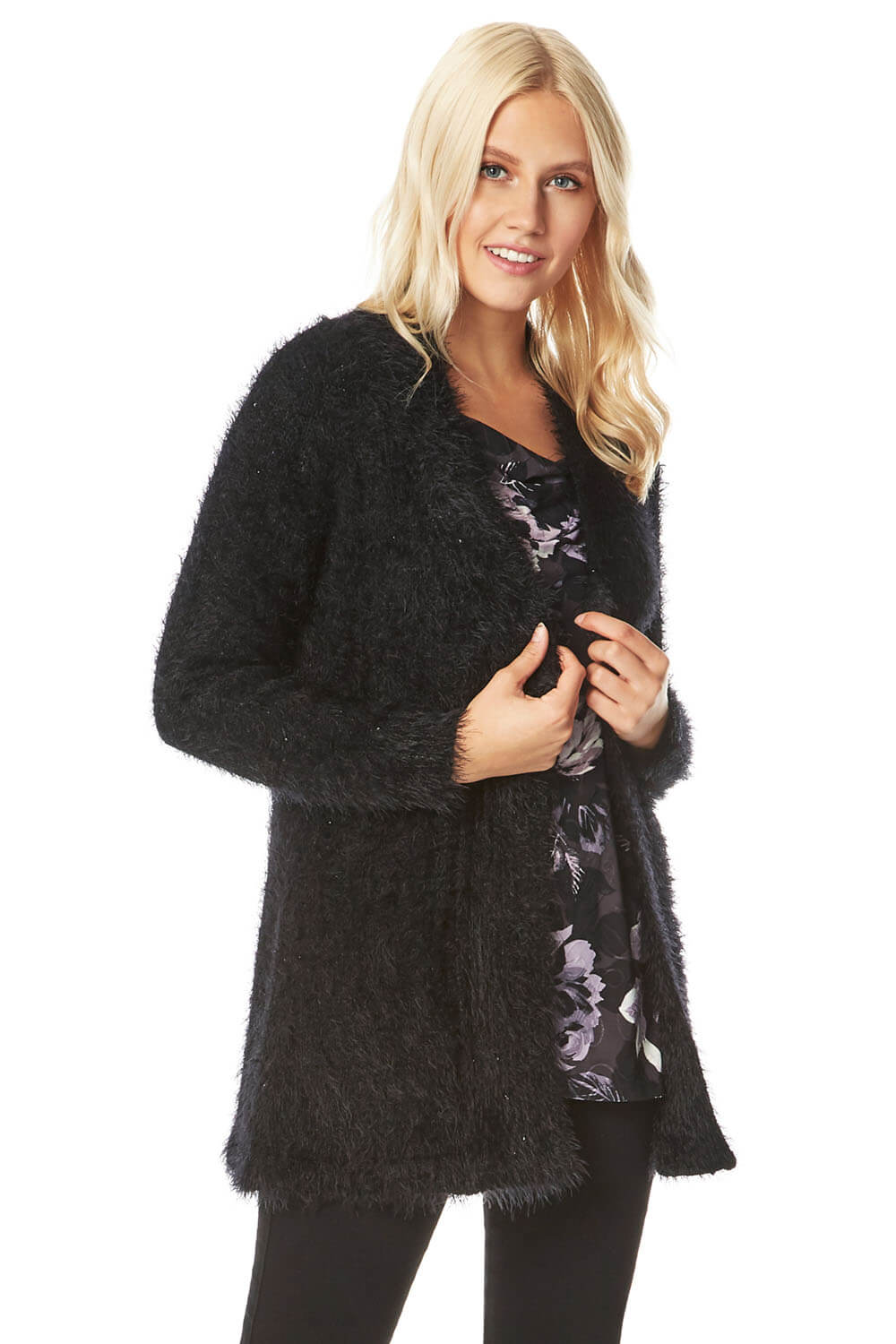 Roman Womens Fluffy Long Sleeve Cardigan - Black - Size 14 UK | Roman Sale | Discount Designer Brands