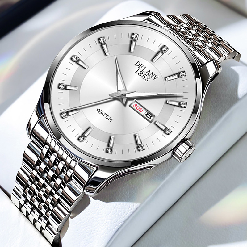 Women Men Quartz Watch Large Dial Fashion Rhinestone Business Luminous Calendar Date Waterproof Stainless Steel Strap Watch