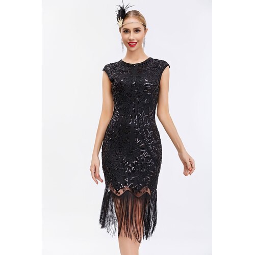 Retrò Vintage Anni Ruggenti Anni 1920 Lunghezza al ginocchio Abito Flapper Senza maniche Il grande Gatsby Paillettes Frange Scollo Tondo Costume Per donna Natale Carnevale Mascherata Festa a tema
