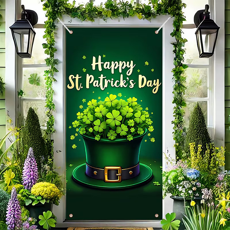 St. Patrick's Day Posters Door Cover Outdoor Banners Green Hat Shamrock Cute 3D Party Dorm Teens Room College Dorm Guys Man Cave Frat Bedroom Shooting Backgrounds Home Decor