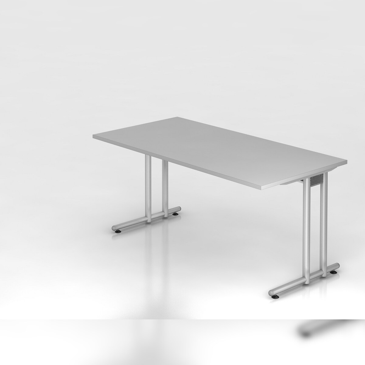 PROREGAL Schreibtisch Mauno | Grau | BxT 160x80cm | Arbeitshöhe 72cm | höhenjustierbar 0-10 mm | C-Fuß-Gestell Silber | Bürotisch