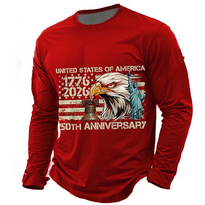 America's 250th Anniversary Men's America's 250th Anniversary T Shirt Long Sleeve T shirt 3D Print Crew Neck Shirt Daily Casual Daily Travel Party Blue Lake Blue Black Summer Spring Fall Clothing