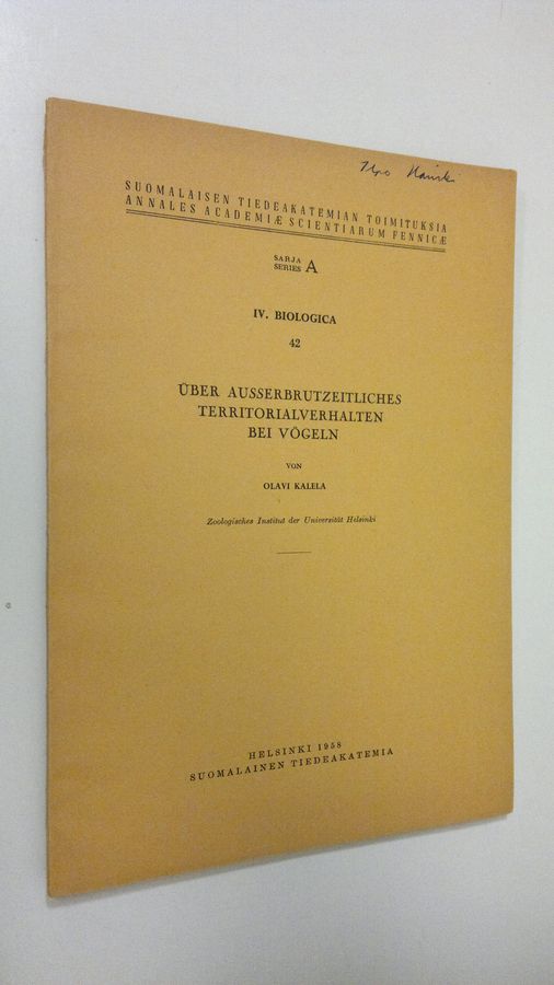 Olavi Kalela : Uber ausserbrutzeitliches Territorialverhalten bei Vögeln
