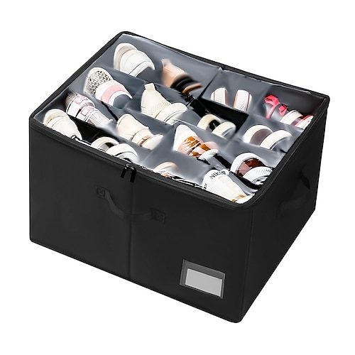 Organizzatore per scarpe per armadio, organizzatore per scarpe con coperchio trasparente e robuste maniglie, contenitore per scarpe da ginnastica, sandali e pantofole, adatto per 16 paia,