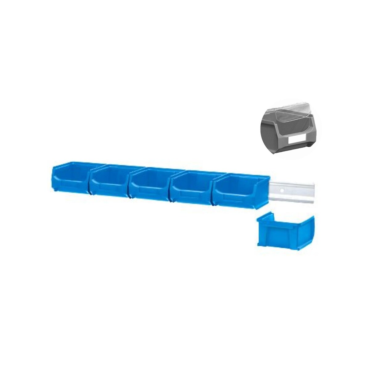 PROREGAL Wandleiste mit 6x Blaue Sichtlagerbox 1.0 mit Abdeckung | HxBxT 6,1x60,5x10cm | Wandhalterung, Kleinteileaufbewahrung, Sortimentsboxhalterung