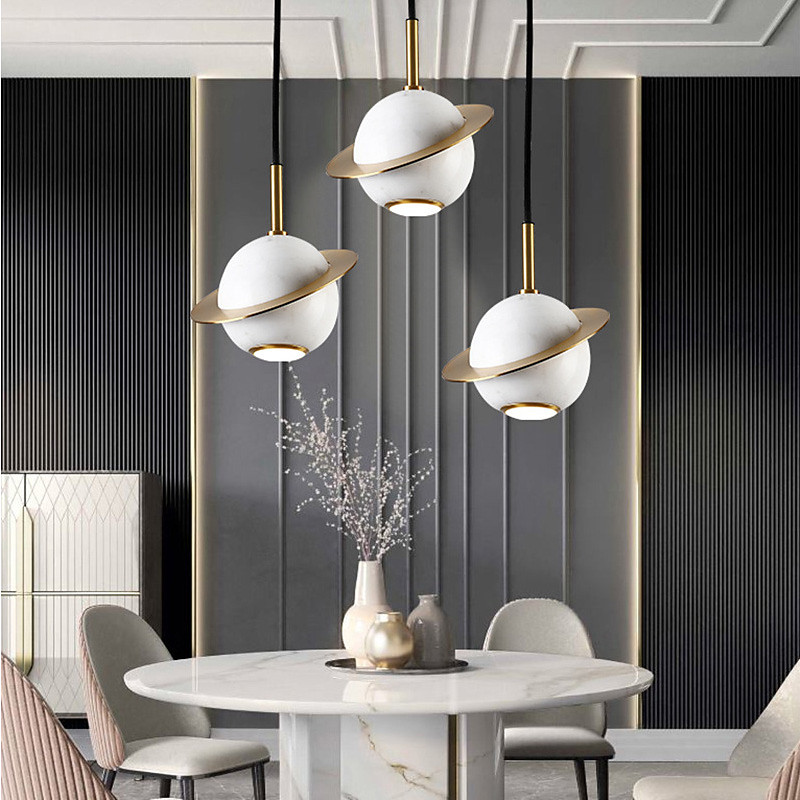 Modern Globe Pendant Light, Mid Century Brushed Brass Hanging Lamp with Marble Shade, Adjustable Height Chandelier Fixture for Kitchen Island, Dining Room Bedroom