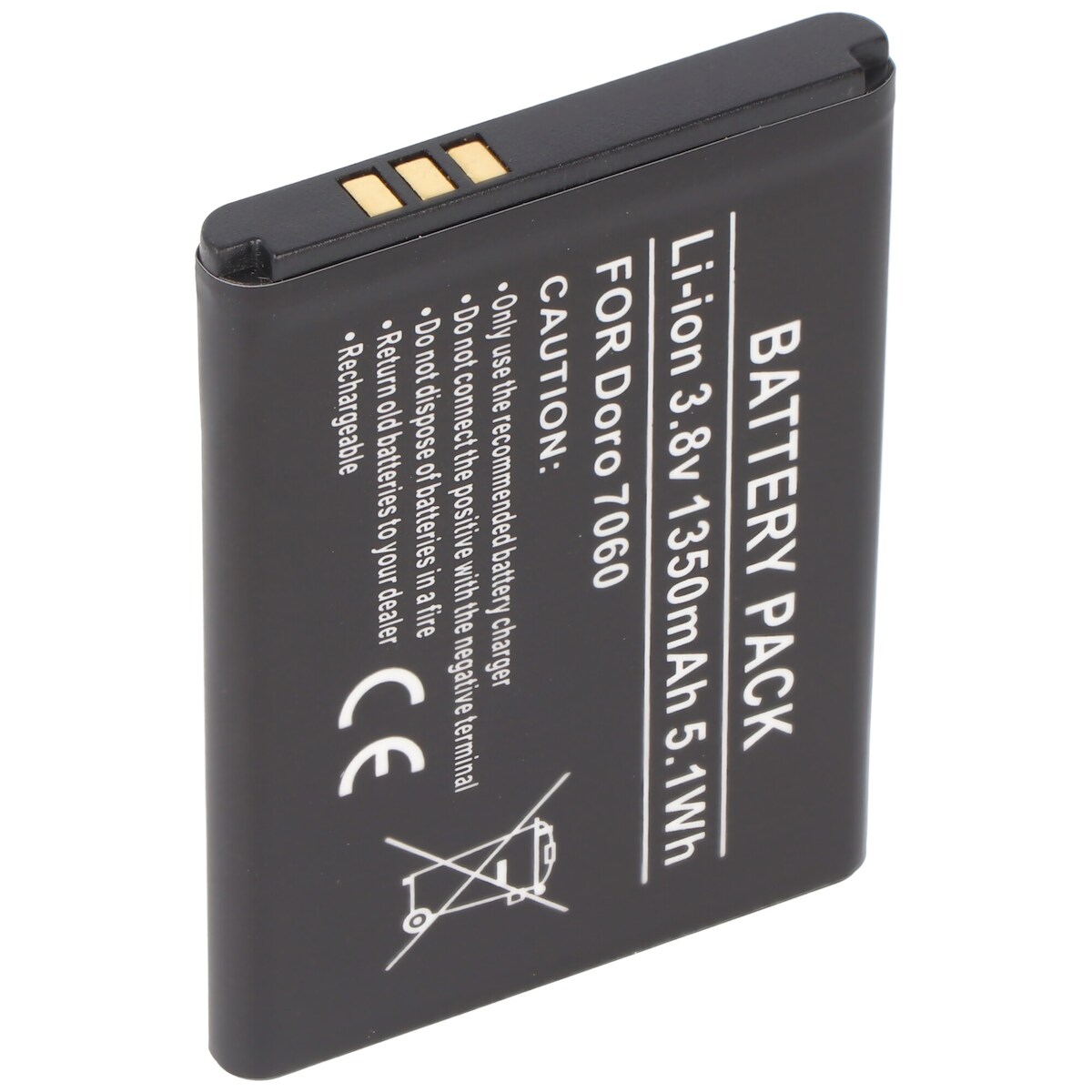 AccuCell Akku passend für Doro 7060, DBS-1350A Li-ion, 3,8V, 1350mAh, 5,1Wh, ca. 53 x 38,5 x 5,6mm