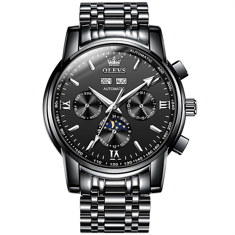 The New Olevs Men'S Business Watch With Luminous Moon Phase Calendar 24-Hour Multi-Functional Fully Automatic Mechanical Watch Casual Fashion Waterproof Men'S Sports Wristwatch