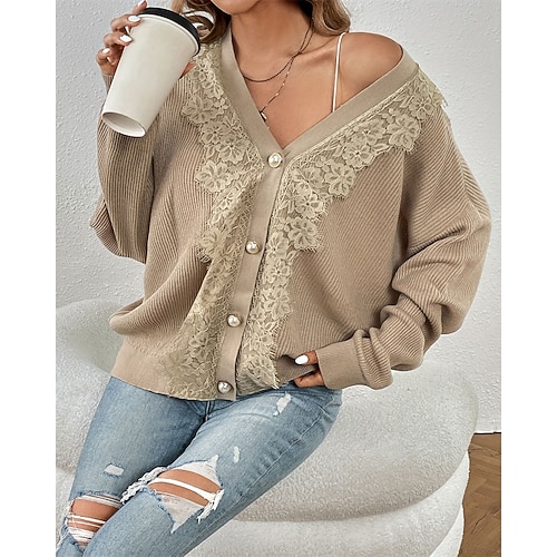 Per donna Felpa Cardigan Elegante Moda Streetwear Tinta unica Floreale Scollo a V Bottoni Lavorato a maglia Stampato Manica Lunga Top Regolari Maglia All'aperto Casa Quotidiano Cachi Estate Autunno