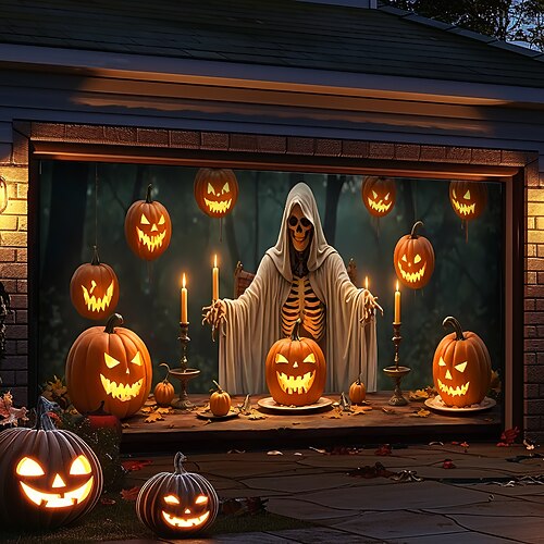 Halloween arazzo Copertura per porta del garage Grande appeso Costumi scheletro Stampa 3D Gotico punk oscuro Da serata All'aperto Sfondi di ripresa Yarda Casa infestata Arredamento per la casa