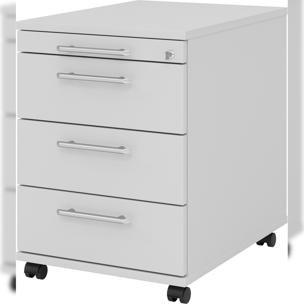 bümö Schreibtisch Schrank Büro mit Hängeregister für Hängeordner, Schubladenschrank Holz in weiß, Container mit Schubladen & Hängeregistratur -