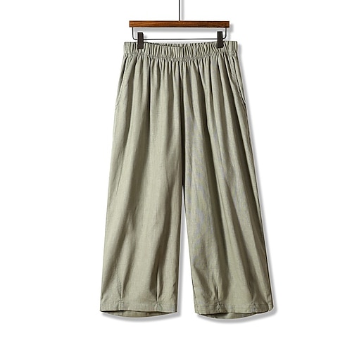 Per uomo Pantaloni di Lino Pantaloni Pantaloni Estivi Pantaloni da Spiaggia Pieghettato Elastico in vita Gamba Dritta Semplice Comodità Traspirante Lunghezza intera Affari Quotidiano Ferie Moda Stile