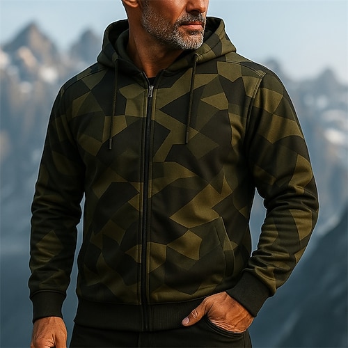 Per uomo Felpa con cappuccio Felpa con cappuccio a zip intera Felpa con cappuccio mimetica Blu Verde Cachi Con Cappuccio Mimetico Patchwork Blocco di colore Sport Outdoor Casuale Quotidiano