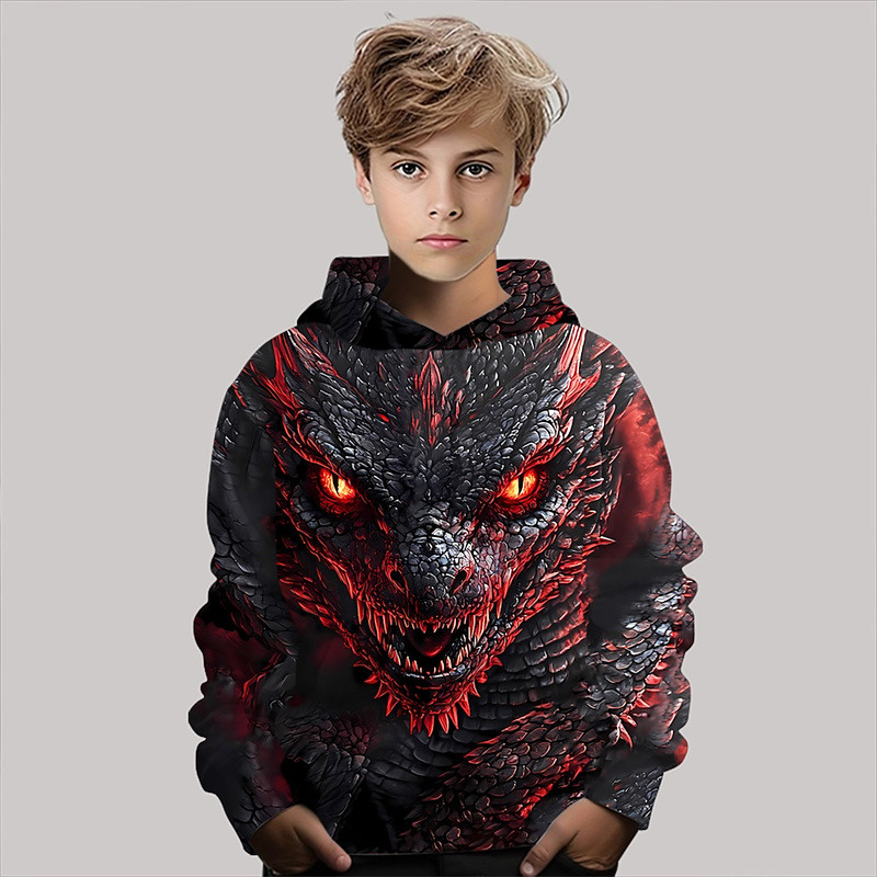 Boys' 3D Dragon Hoodie Long Sleeve Spring Fall Fashion Streetwear Kids 4-12 Years Hooded Outdoor Casual Daily Regular Fit