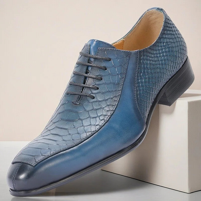 Men's Dress Shoes Brown Crocodile-Pattern Leather Shoes with Lace-Up Closure and Durable Sole for Formal Occasions and Business Wear