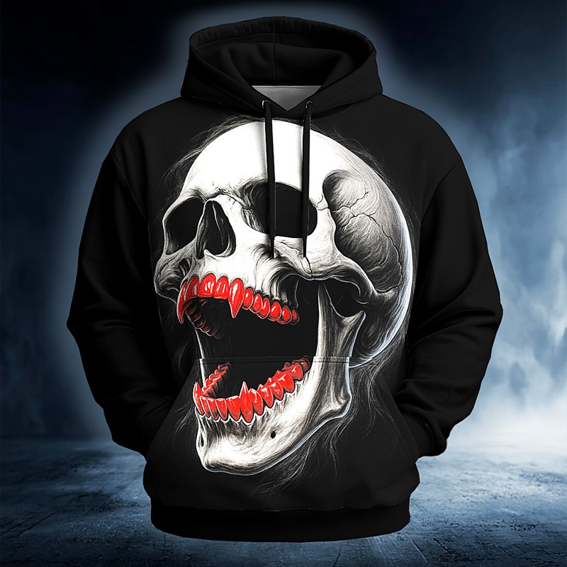 Men's Skull 3D Hoodie Sweatshirt Punk Exaggerated Gothic Casual Long Sleeve Crew Neck Hooded Club Streetwear Black Red Blue Green Drawstring Fall Winter Designer S M L XL XXL XXXL