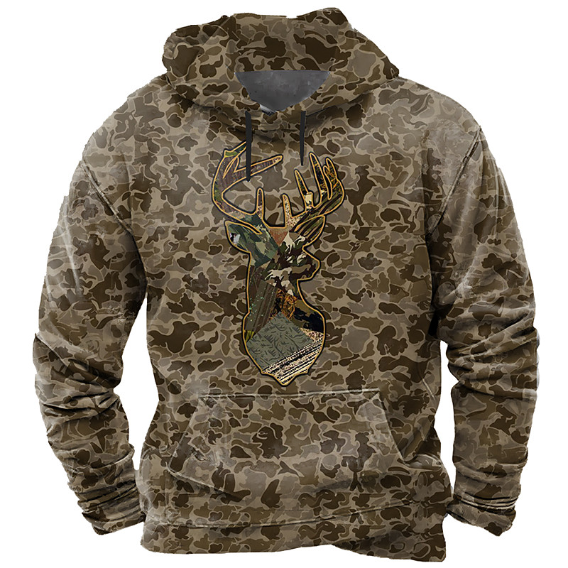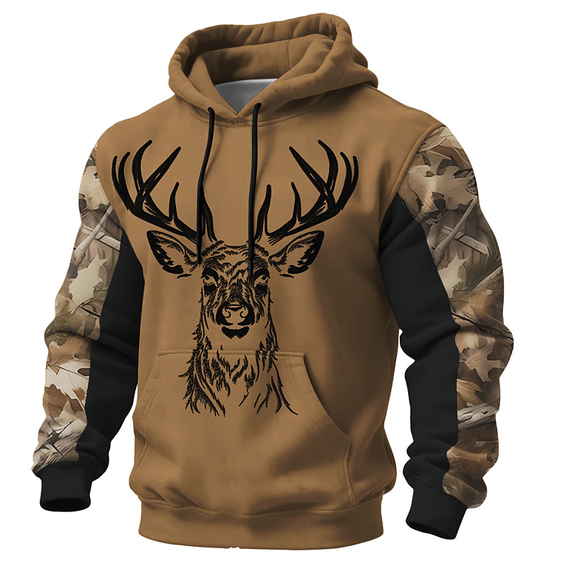 Men's Deer Hoodie Sweatshirt Ethnic Vintage Retro Hunting Crew Neck Outdoor Streetwear Brown Khaki Army Green Drawstring Fall Winter Designer S M L XL XXL XXXL