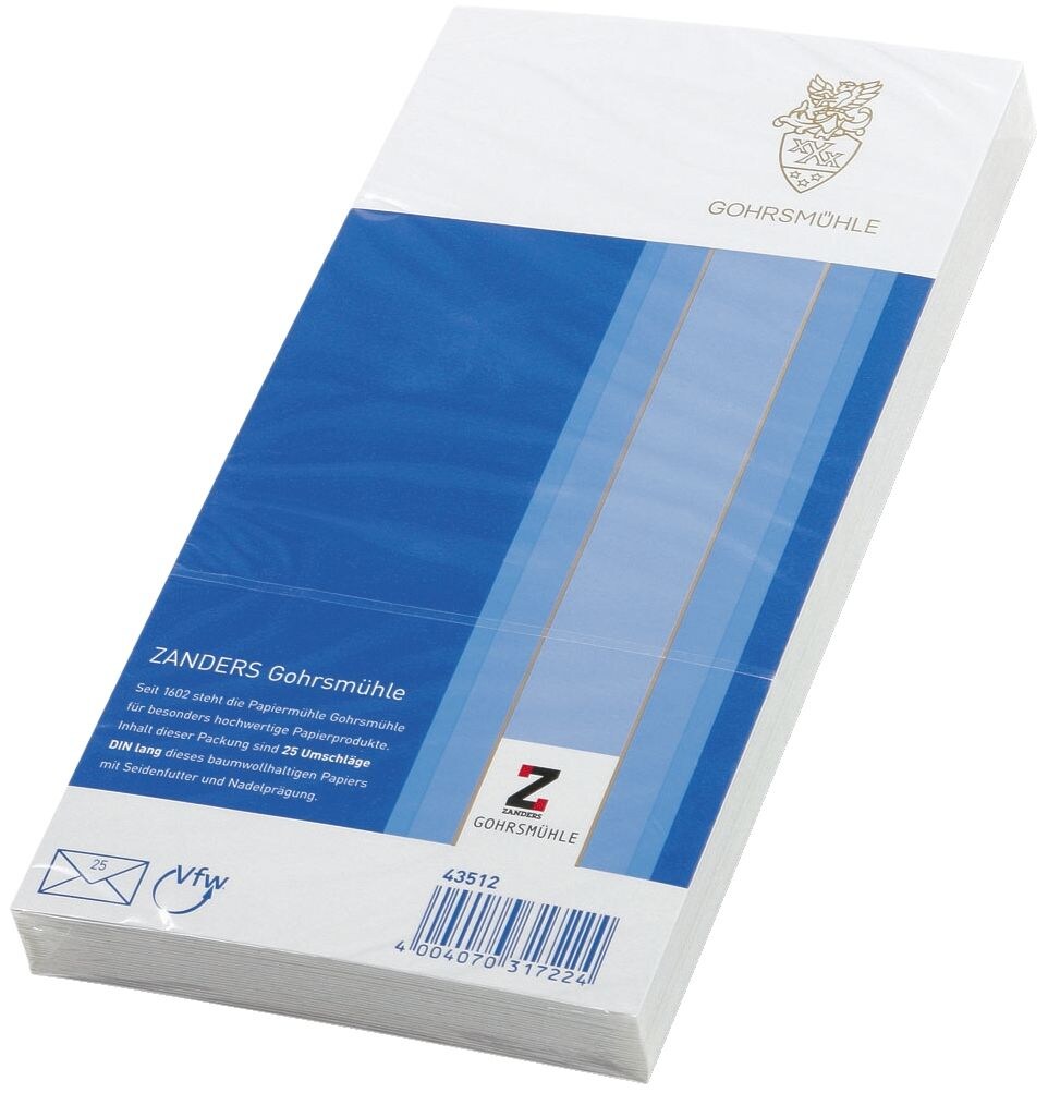 Zanders 43512 Briefumschlag Gohrmühle, DL, 110 x 220 mm, weiß, gummiert, 80g, 25 Stück