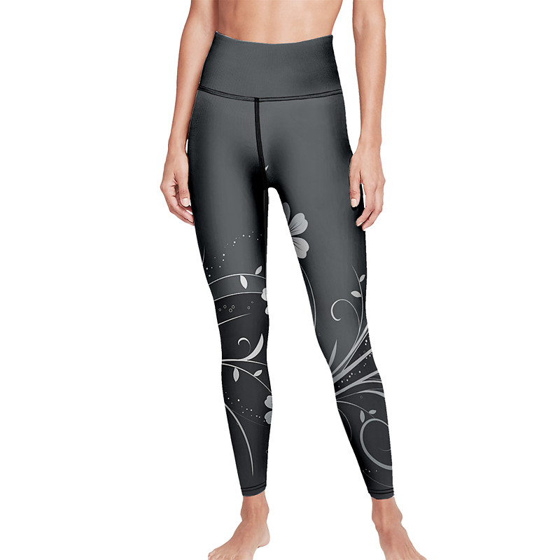 Women's Yoga Pants Butt Lift Tummy Control High Waist Gym Workout Running Fitness Cropped Leggings Floral Dark Gray Fall Sports Activewear High Elasticity